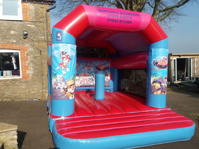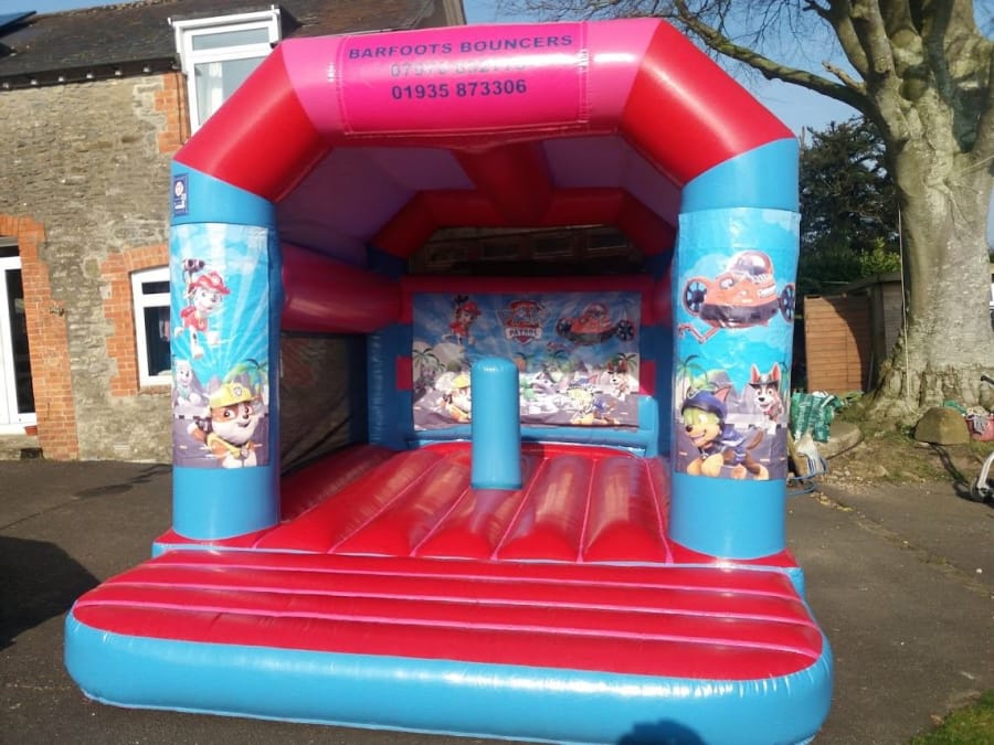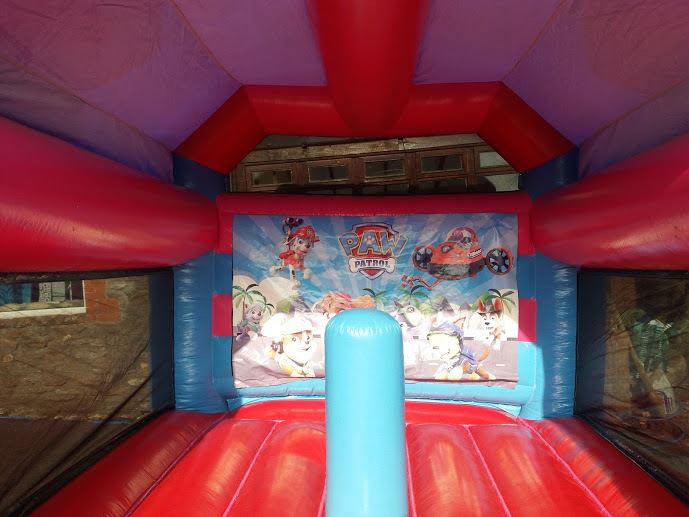 Paw Patrol Bouncy castle 16ft x 14ft with 1 biff and bash inside. Has shower cover and netted sides.