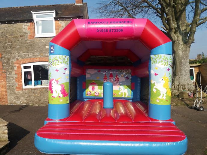 16ft x 14ft Bouncy castle Unicorn theme castle with a single Biff and Bash inside. Little girls love this castle